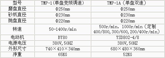 產(chǎn)品概述: TMP-1單盤雙速金相試樣磨拋機(jī) •澳大利亞科學(xué)家smeuls提出凡是用固定磨料(如砂輪片、砂輪和金剛石磨盤以及各種砂紙)制備試樣的過程稱為磨光,金相拋光研磨機(jī),凡是使用松散磨料(如加入各種磨料微粉懸浮液、噴霧拋光劑、拋光膏)制備過程稱為拋光。 •單盤雙速磨拋機(jī)(拋盤、研磨盤)就能完成各種試樣的粗磨、細(xì)磨、干磨、濕磨、研磨及拋光等各道工序。 •該機(jī)的磨拋盤直徑均大于國(guó)內(nèi)同類產(chǎn)品,金相樣品自動(dòng)研磨機(jī),有效增加工作面20-30%有更多不同線速度的選擇。 •本機(jī)可選擇安裝PD-1型推移器,金相研磨機(jī)價(jià)格,能替代手工進(jìn)行磨拋各道工序。 TMP-1A無級(jí)變速金相試樣磨拋機(jī) •變頻調(diào)速,金相試樣自動(dòng)研磨機(jī),試驗(yàn)范圍自行設(shè)定。 •只需調(diào)換磨盤或拋盤和選擇合適轉(zhuǎn)速即可粗磨、細(xì)磨、干磨、濕磨、研磨及拋光等各道工序。 •傳動(dòng)功率、磨拋盤直徑均大于國(guó)內(nèi)同類產(chǎn)品,金相切片研磨機(jī),可增加有效工作面20-30%,金相研磨機(jī),可適應(yīng)不同材料的制備要求。 •本機(jī)可選擇安裝PD-1型推移器,全自動(dòng)金相拋光研磨機(jī),能替代手工進(jìn)行磨拋各道工序。 技術(shù)參數(shù):