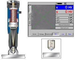 TIV(通過壓痕觀察)法是建立在維氏硬度檢測之上的;此方法通過特殊的光學方法“看穿” 維氏金剛石。,當探頭壓人在材料的同時,北京時代超聲波硬度計,壓痕的圖片就被直接、自動并迅速地進行傳輸和評估,儀器通過壓痕,讀出測量結(jié)果。