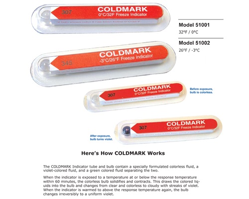 溫度指標標簽是體積小、成本低的溫度指示標簽或時間/溫度標簽,,使用于食品運輸、儲存或處理過程。典型的用途包括監(jiān)測藥品、化學品和新鮮農(nóng)產(chǎn)品在運輸過程中德溫度。如果溫度超出預設(shè)的限制之外,,標簽顯示變色。 DeltaTrak提供滿足你各種需要的標簽:WarmMark溫度標簽、高溫熱標簽和TempDot時間溫度指示標簽顯示溫度變 化超過預設(shè)的時間。FreezeCheck和ColdMark溫度標簽用于顯示運輸溫度低于0℃。商業(yè)洗碗機使用的TempDot高溫熱標簽可顯示最終沖 洗水溫是否達到71℃(HACCP體系所要求的溫度)。 ColdMark溫度標簽,,型號51001-51002:有32℉/0°C或26°F/-3°C型號,,可以應用在產(chǎn)品、外包裝、紙箱包裝的對冷溫度敏感的物品上。當暴露在低于其反應溫度的環(huán)境中約60分鐘,,標簽內(nèi)的液體會變成云狀紫條紋。一旦回升到反應溫度以上,,標簽內(nèi)的液體又會不可逆轉(zhuǎn)地變成均勻的紫色。